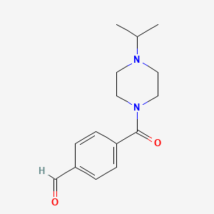 4-(4-propan-2-ylpiperazine-1-carbonyl)benzaldehyde is unique due to the combination of the formylbenzoyl group and the isopropyl-substituted piperazine ring. This structure provides a balance of reactivity and stability, making it a versatile intermediate for various chemical transformations and applications.
