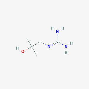 The substituent on the guanidine nitrogen can influence the pKa value. The 2-hydroxy-2-methylpropyl group is an alkyl substituent, which is generally electron-donating and would be expected to slightly increase the basicity of the guanidine moiety compared to the unsubstituted guanidine. However, the presence of the hydroxyl group could potentially lead to intramolecular hydrogen bonding, which may also affect the pKa. The precise pKa value of this compound would require experimental determination through methods such as potentiometric or spectrophotometric titration.