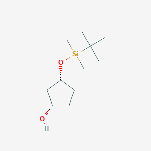 (1S,3R)-3-((tert-Butyldimethylsilyl)oxy)cyclopentan-1-ol is unique due to its chiral nature and the presence of the tert-butyl(dimethyl)silyl group. This combination provides both steric protection and the ability to undergo selective reactions, making it a valuable intermediate in organic synthesis.