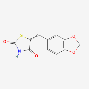 (5Z)-5-(2H-1,3-BENZODIOXOL-5-YLMETHYLIDENE)-1,3-THIAZOLIDINE-2,4-DIONE is a heterocyclic compound that has garnered significant interest in the fields of medicinal chemistry and organic synthesis. This compound features a unique structure combining a benzodioxole moiety with a thiazolidine-2,4-dione ring, making it a versatile scaffold for various chemical reactions and biological activities.