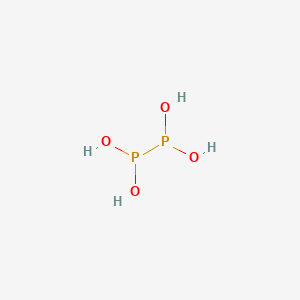 Dihydroxyphosphinophosphonous acid (DHPPA) is a phosphorus-containing compound featuring both phosphinic (P(III), H₂P(O)OH) and phosphonic (P(V), HP(O)(OH)₂) acid groups within its structure. This dual functionality enables unique reactivity and applications in coordination chemistry, catalysis, and materials science.