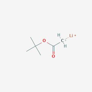 tert-Butyl lithioacetate is presumed to be the lithium salt of tert-butyl acetate, a highly reactive organometallic compound. Such species are typically used as nucleophiles in alkylation or conjugate addition reactions in organic synthesis. However, the evidence primarily covers tert-butyl esters (e.g., tert-butyl acetate, tert-butyl L-pyroglutamate) and their derivatives, which share functional groups but differ in reactivity and applications.