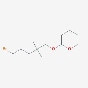 The synthesis of 2-[(5-bromo-2,2-dimethylpentyl)oxy]tetrahydro-2H-pyran typically involves the reaction of 5-bromo-2,2-dimethylpentanol with tetrahydro-2H-pyran under acidic conditions. The reaction proceeds via the formation of an ether linkage between the hydroxyl group of the alcohol and the oxygen atom of the tetrahydro-2H-pyran ring.