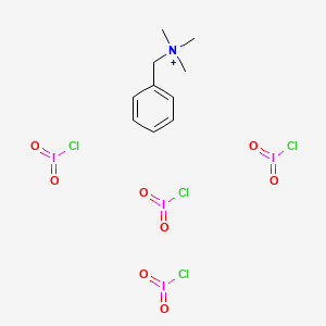 The mechanism of action of benyltrimethylammonium tetrachloroiodate involves the formation of reactive oxidizing species that facilitate the transfer of an iodine atom to the substrate. This process leads to the oxidation or chlorination of the target molecule. The compound’s molecular targets and pathways include organic molecules with reactive sites that can undergo oxidation or substitution reactions .