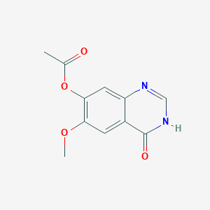 6-METHOXY-4-OXO-3,4-DIHYDROQUINAZOLIN-7-YL ACETATE is an organic compound with the molecular formula C11H10N2O4. It belongs to the quinazolinone family, which is known for its diverse biological activities. This compound is characterized by the presence of acetoxy and methoxy functional groups attached to a quinazolinone core.