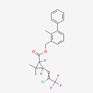 InChI=1S/C23H22ClF3O2/c1-14-16(10-7-11-17(14)15-8-5-4-6-9-15)13-29-21(28)20-18(22(20,2)3)12-19(24)23(25,26)27/h4-12,18,20H,13H2,1-3H3 |