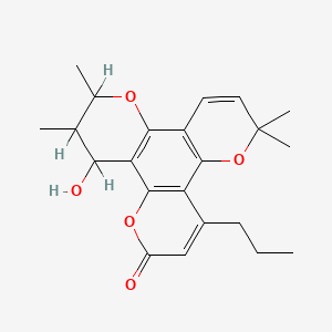 InChI=1S/C22H26O5/c1-6-7-13-10-15(23)26-21-16(13)20-14(8-9-22(4,5)27-20)19-17(21)18(24)11(2)12(3)25-19/h8-12,18,24H,6-7H2,1-5H3 |