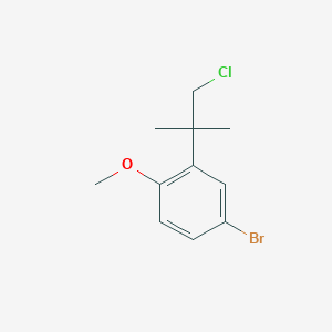 The synthesis of 4-Bromo-2-(1-chloro-2-methylpropan-2-yl)-1-methoxybenzene typically involves the bromination of 2-(2-chloro-1,1-dimethylethyl)anisole. The reaction is carried out using bromine or a brominating agent such as N-bromosuccinimide (NBS) in the presence of a catalyst like iron or aluminum chloride. The reaction conditions usually involve a solvent like dichloromethane or chloroform and are conducted at room temperature or slightly elevated temperatures.