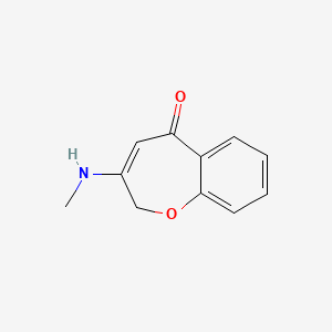 3-(Methylamino)-1-benzoxepin-5(2H)-one is a heterocyclic organic compound featuring a benzoxepin core structure fused with a seven-membered oxygen-containing ring and a methylamino substituent at the 3-position. Its structure combines aromaticity (from the benzene ring) with the conformational flexibility of the oxepin system, which may influence its binding affinity to biological targets.