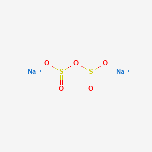 Sodium disulfite, also known as sodium metabisulfite (B1197395) or sodium pyrosulfite, is an inorganic compound with the chemical formula Na₂S₂O₅[1][2][3]. It is a white crystalline powder with a faint odor of sulfur dioxide[1][2][3][4][5]. As a versatile chemical, it serves numerous functions across various industries, including as a preservative, antioxidant, and disinfectant[3][4]. In the pharmaceutical and drug development sectors, it is frequently employed as an antioxidant excipient to protect active pharmaceutical ingredients (APIs) from oxidative degradation, thereby enhancing the stability and shelf-life of formulations[2][6]. This guide provides an in-depth overview of its chemical structure, properties, synthesis, and analytical methodologies relevant to a scientific audience.