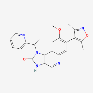 The synthesis of 7-(3,5-Dimethylisoxazol-4-yl)-8-methoxy-1-(®-1-(pyridin-2-yl)ethyl)-1H-imidazo[4,5-c]quinolin-2(3H)-one typically involves multi-step organic synthesis. The process begins with the preparation of the core imidazo[4,5-c]quinoline structure, followed by the introduction of the isoxazole and pyridine moieties. Common reagents used in these reactions include various halogenated compounds, organometallic reagents, and catalysts to facilitate the formation of the desired bonds.