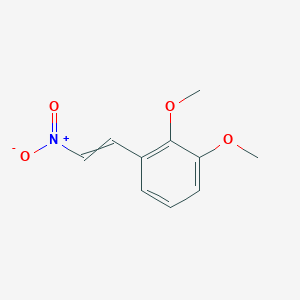 1,2-Dimethoxy-3-(2-nitroethenyl)benzene (CAS 37630-20-9), also known as 2,3-dimethoxy-β-nitrostyrene, is a nitroalkene derivative with the molecular formula C₁₀H₁₁NO₄. It features a benzene ring substituted with two methoxy groups at positions 1 and 2 and a trans-configured nitroethenyl group at position 3 . The compound crystallizes in the monoclinic P2₁/c space group, with unit cell parameters a = 5.3558 Å, b = 13.5897 Å, c = 14.2646 Å, and β = 97.038° . The dihedral angle between the benzene ring and the nitroalkenyl group is 23.90°, indicating partial conjugation .