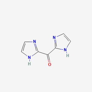 Bis-(1H-imidazol-2-YL)-methanone is a symmetric compound featuring two imidazole rings connected via a central ketone group. This structure confers unique electronic and steric properties, making it a versatile scaffold in coordination chemistry and pharmaceutical research. The compound’s synthesis typically involves condensation reactions, though specific protocols vary depending on substituents and target applications. Its dual imidazole moieties enable strong metal-binding capabilities, which are exploited in catalysis and material science .