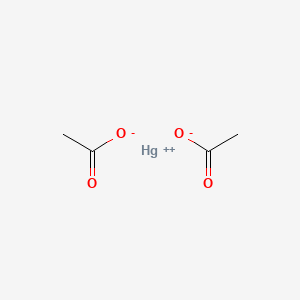 ¹⁹⁹Hg NMR: Mercury has an NMR-active isotope, ¹⁹⁹Hg (spin ½, ~17% natural abundance).[4] ¹⁹⁹Hg NMR spectra cover a very wide chemical shift range, making the technique highly sensitive to the coordination environment of the mercury atom.[4][12] For Hg(II) compounds, chemical shifts are typically reported relative to a standard like dimethylmercury (Hg(CH₃)₂). The specific chemical shift for this compound can vary depending on the solvent and concentration.