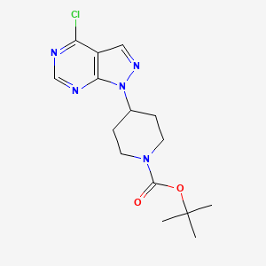 InChI=1S/C15H20ClN5O2/c1-15(2,3)23-14(22)20-6-4-10(5-7-20)21-13-11(8-19-21)12(16)17-9-18-13/h8-10H,4-7H2,1-3H3