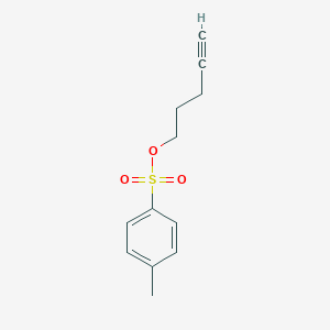 The tosylation of 4-pentyn-1-ol is typically carried out by reacting the alcohol with p-toluenesulfonyl chloride (TsCl) in the presence of a base. The base serves to neutralize the hydrochloric acid that is formed as a byproduct of the reaction. Common bases used for this purpose include pyridine (B92270) and triethylamine. The reaction is generally performed in an aprotic solvent, such as dichloromethane (DCM) or diethyl ether, to avoid unwanted side reactions.