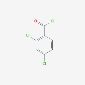 2,4-Dichlorobenzoyl chloride, identified by the CAS number 89-75-8, is a pivotal organochlorine compound widely utilized as a versatile intermediate in organic synthesis.[1][2] Its molecular structure consists of a benzene (B151609) ring substituted with two chlorine atoms at the 2 and 4 positions and a reactive acyl chloride functional group.[3][4] This configuration makes it a potent acylating agent, enabling the introduction of the 2,4-dichlorobenzoyl moiety into various molecules.[5] This reactivity is fundamental to the synthesis of a wide array of fine chemicals, including pharmaceuticals, agrochemicals (such as herbicides and pesticides), and dyes.[1][3][5]
