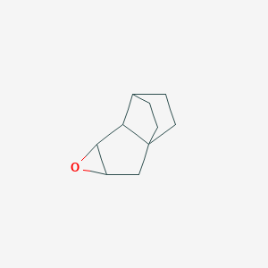 4-Oxatetracyclo[5.2.2.0¹,⁶.0³,⁵]undecane is a polycyclic organic compound characterized by a fused tetracyclic framework with an oxygen atom integrated into its structure. The IUPAC name reflects its complex bicyclic and tricyclic bridge systems, which confer unique steric and electronic properties.