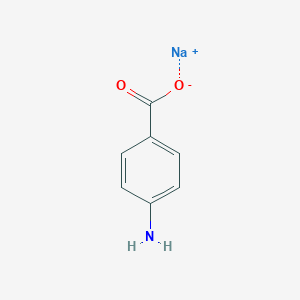 The formation of Sodium 4-aminobenzoate is typically achieved through a straightforward acid-base reaction. In this process, 4-aminobenzoic acid (PABA) is treated with a sodium base, most commonly sodium hydroxide (B78521) or sodium carbonate. The reaction is generally performed in an aqueous solution, where the acidic proton of the carboxylic acid group on PABA is abstracted by the base, resulting in the formation of the sodium salt and water. The resulting Sodium 4-aminobenzoate is a stable, water-soluble salt. chemicalbook.comhimedialabs.comchemimpex.com This salt is an important intermediate in the synthesis of various organic compounds, including dyes and pharmaceuticals. chemicalbook.comgoogle.com