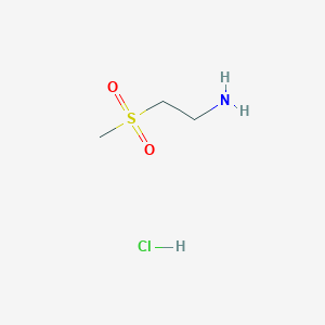 The mechanism of action of 2-aminoethylmethylsulfone hydrochloride involves its interaction with molecular targets such as enzymes and proteins. The amino group can form hydrogen bonds with active sites of enzymes, while the sulfone group can participate in various chemical interactions, modulating enzyme activity and protein function . These interactions can lead to inhibition or activation of specific biochemical pathways .