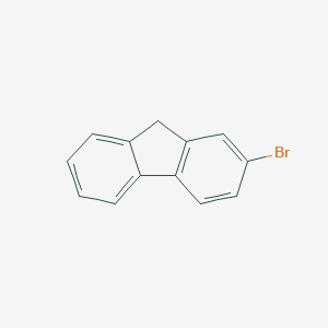 2-Bromofluorene, with a CAS number of 1133-80-8, is a halogenated polycyclic aromatic hydrocarbon. It is characterized by a fluorene (B118485) backbone with a bromine atom substituted at the 2-position. This compound serves as a crucial intermediate in organic synthesis, particularly in the development of materials for organic light-emitting diodes (OLEDs) and as a building block for more complex molecules in pharmaceutical and agrochemical research.[1][2] Its planar structure and the reactivity endowed by the bromine substituent make it a versatile reagent in various chemical transformations.[1]
