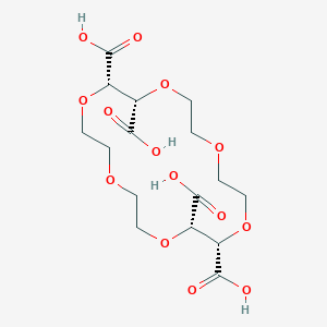 The development of functionalized crown ethers, including the tetracarboxylic acid derivatives, emerged from the recognition that additional binding sites could enhance selectivity and expand the range of guest molecules that could be accommodated. The synthesis of this compound represents a significant advancement from the original crown ether structures, incorporating chiral centers and carboxylic acid functionalities that enable both metal cation binding and chiral molecular recognition. Research has shown that the compound and its ytterbium(III) complex are evaluated as chiral nuclear magnetic resonance discriminating agents, with the crown ether being useful for protonated amino acid esters, amines, and amino alcohols.