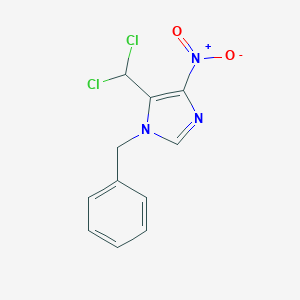 The mechanism of action of 1-Benzyl-5-dichloromethyl-4-nitroimidazole involves interactions with molecular targets such as enzymes and receptors. The nitro group can undergo reduction to form reactive intermediates that interact with cellular components, leading to antimicrobial or cytotoxic effects. The benzyl and dichloromethyl groups may enhance the compound’s ability to penetrate cell membranes and reach intracellular targets.