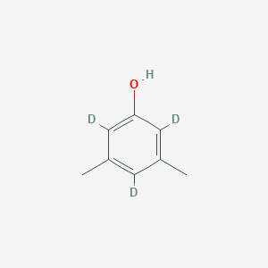 2,4,6-Trideuterio-3,5-dimethylphenol (CAS RN: 1219803-59-4) is a deuterated derivative of 3,5-dimethylphenol (C₈H₁₀O), where three hydrogen atoms at the 2, 4, and 6 positions of the aromatic ring are replaced with deuterium (D) . The molecular formula is (CH₃)₂C₆D₃OH, with a molecular weight of 126.18 g/mol. This isotopic labeling enhances its utility in nuclear magnetic resonance (NMR) spectroscopy and mass spectrometry, as deuterium substitution minimizes interference from proton signals and improves metabolic tracking in kinetic studies .