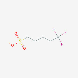 The mechanism of action of 5,5,5-Trifluoropentane-1-sulfonate involves its interaction with molecular targets through the sulfonate group. This group can form strong ionic or covalent bonds with nucleophilic sites on proteins or other biomolecules, leading to inhibition or modification of their activity. The fluorine atoms enhance the compound’s stability and reactivity, making it a valuable tool in biochemical studies.