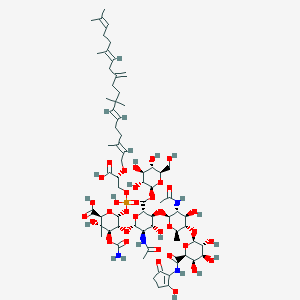 CC1C(C(C(C(O1)OC2C(OC(C(C2O)NC(=O)C)OC3C(C(C(OC3OP(=O)(O)OCC(C(=O)O)OCC=C(C)CCC=CC(C)(C)CCC(=C)CC=C(C)CCC=C(C)C)C(=O)O)(C)O)OC(=O)N)COC4C(C(C(C(O4)CO)O)O)O)NC(=O)C)O)OC5C(C(C(C(O5)C(=O)NC6=C(CCC6=O)O)O)O)O |