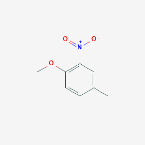 The synthesis of 4-Methyl-2-nitroanisole can be achieved through several routes. One common method is the nitration of p-cresyl methyl ether using a mixture of nitric acid and sulfuric acid. ontosight.ai An alternative synthesis involves the methylation of 4-methyl-2-nitrophenol. chemicalbook.com In this procedure, 4-methyl-2-nitrophenol is first deprotonated with sodium hydroxide (B78521) to form the more nucleophilic sodium phenoxide, which is then reacted with a methylating agent like dimethyl sulfate (B86663). smolecule.com