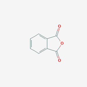 This compound can be synthesized via oxidation of o-xylene, in the presence of V2O5/TiO2 monolithic catalyst supported by aluminium honeycomb.0>>This compound is an anhydride of phthalic acid and a key intermediate in the production of plasticizers, dyes, polyesters resins, modifiers for rubber, and polymers.0>>This compound appears as a colorless to white lustrous solid in the form of needles with a mild distinctive odor. Moderately toxic by inhalation or ingestion and a skin irritant. Melting point 64°F Flash point 305°F. Forms a corrosive solution when mixed with water. Used in the manufacture of materials such as artificial resins.0>>This compound is the cyclic dicarboxylic anhydride that is the anhydride of phthalic acid. It has a role as an allergen. It is a cyclic dicarboxylic anhydride and a member of 2-benzofurans.0>>Exposure to this compound may occur during its use as a chemical intermediate in the plastics industry. The acute (short-term) effects from exposure to this compound in humans consists of irritation to the eyes, respiratory tract, and skin, but no permanent injury is observed. Chronic (long-term) effects observed in workers exposed to this compound included conjunctivitis, rhinitis, rhinoconjunctivitis, bronchitis, and irritation of the skin and mucous membranes of the respiratory tract. Animal studies indicate that chronic exposure to this compound vapor causes congestion, irritation, and injury to lung cells. No studies are available on the reproductive, developmental, or carcinogenic effects of this compound in humans. EPA has not classified this compound for carcinogenicity.