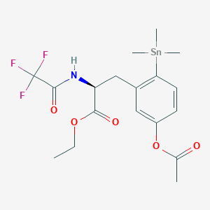 Ethyl (2S)-3-(5-acetyloxy-2-trimethylstannylphenyl)-2-[(2,2,2-trifluoroacetyl)amino]propanoate is a complex organic compound that has garnered attention for its potential biological activities. This article explores its biological properties, mechanisms of action, and relevant research findings.