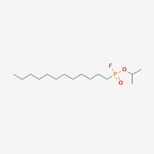 The synthesis of isopropyl dodecylfluorophosphonate proceeds through a two-step pathway. The initial step involves the formation of an unsaturated precursor, isopropyl dodec-11-enylfluorophosphonate. This intermediate is then subjected to catalytic hydrogenation to yield the final saturated product, isopropyl dodecylfluorophosphonate. This strategy allows for the potential introduction of a tritium label for radioligand binding studies.