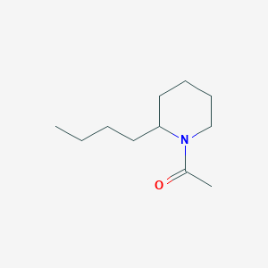 1-(2-Butylpiperidin-1-yl)ethanone is a piperidine derivative featuring a butyl substituent at the 2-position of the piperidine ring and an acetyl group (ethanone) at the 1-position. Piperidine-based compounds are widely studied in medicinal chemistry due to their versatility as building blocks for pharmaceuticals, agrochemicals, and bioactive molecules. The butyl chain may enhance lipophilicity, influencing membrane permeability and pharmacokinetic properties.