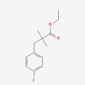 The mechanism by which Ethyl 3-(4-fluorophenyl)-2,2-dimethylpropanoate exerts its effects depends on its specific application. In biological systems, it may interact with molecular targets such as enzymes or receptors, modulating their activity and influencing various biochemical pathways. The presence of the fluorophenyl group can enhance the compound’s binding affinity and specificity for certain targets.