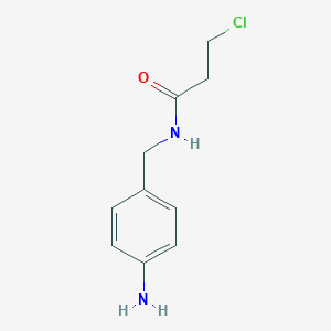 N-(4-Aminobenzyl)beta-chloropropionamide is an amide derivative featuring a 4-aminobenzyl group attached to a beta-chlorinated propionamide backbone. The compound’s structure comprises a primary aromatic amine (-NH₂) on the benzyl ring and a chlorine atom at the beta position of the propionamide chain, which may confer unique electronic and steric properties.