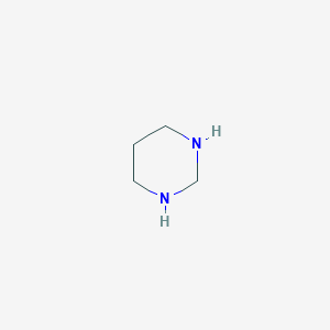 The most traditional and straightforward method for synthesizing hexahydropyrimidines involves the cyclocondensation of a 1,3-diamine with an aldehyde or a ketone.[1] This reaction typically proceeds through the formation of a hemiaminal intermediate, followed by an intramolecular cyclization and subsequent dehydration to yield the final this compound ring. The reaction can be performed with or without a catalyst, although acid catalysis is often employed to enhance the electrophilicity of the carbonyl carbon and facilitate the dehydration step.