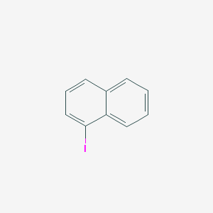 1-Iodonaphthalene is a halogenated aromatic hydrocarbon with the chemical formula C₁₀H₇I. It is a derivative of naphthalene where one hydrogen atom at the alpha (1) position is substituted by an iodine atom. This substitution imparts unique reactivity to the naphthalene ring system, making this compound a valuable intermediate and building block in organic synthesis, particularly in the development of pharmaceuticals and advanced materials. Its utility in carbon-carbon bond-forming reactions, such as the Suzuki, Sonogashira, and Heck couplings, has been extensively demonstrated. This technical guide provides a comprehensive overview of the core chemical properties, structure, synthesis, and reactivity of this compound, tailored for professionals in research and drug development.