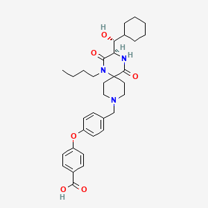 This compound is characterized by a spiro-diketo-piperazine core structure.[5] This structural motif is central to its pharmacological activity. The IUPAC name for this compound is 4-(4-{[(3R)-1-butyl-3-[(R)-cyclohexylhydroxymethyl]-2,5-dioxo-1,4,9-triazaspiro[5.5]undecan-9-yl]methyl}phenoxy)benzoic acid.[4]