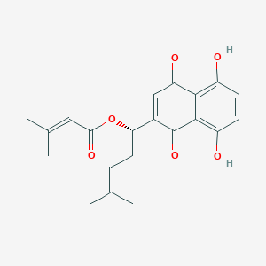 β,β-Dimethylacrylalkannin, a naturally occurring naphthoquinone, has demonstrated notable anticancer properties. Its mechanism of action often involves the induction of apoptosis and the modulation of key signaling pathways implicated in cancer progression.
