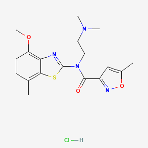 N-(2-(dimethylamino)ethyl)-N-(4-methoxy-7-methylbenzo[d]thiazol-2-yl)-5-methylisoxazole-3-carboxamide hydrochloride is a synthetic compound with notable pharmacological potential. This compound, characterized by its unique structural components, including a thiazole and isoxazole moiety, has been the subject of various studies focusing on its biological activity, particularly in the context of medicinal chemistry.