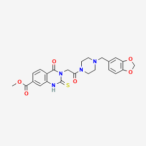 Methyl 3-(2-(4-(benzo[d][1,3]dioxol-5-ylmethyl)piperazin-1-yl)-2-oxoethyl)-4-oxo-2-thioxo-1,2,3,4-tetrahydroquinazoline-7-carboxylate