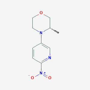 Structural comparison with 4-(6-nitropyridin-3-yl)morpholine, which lacks the methyl substitution at the third position, highlights the impact of the chiral center on molecular properties. The absence of the methyl group in the parent compound results in a symmetric morpholine ring, whereas the (3S)-methyl substitution introduces chirality and conformational bias. Similarly, comparison with other 3-substituted morpholines demonstrates how different substituents influence conformational preferences and potential biological activities.