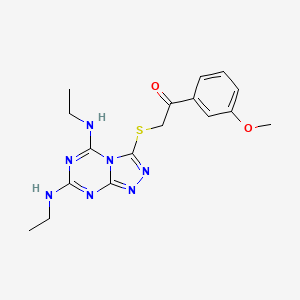 2-{[5,7-bis(ethylamino)-[1,2,4]triazolo[4,3-a][1,3,5]triazin-3-yl]sulfanyl}-1-(3-methoxyphenyl)ethan-1-one is a complex organic compound with a unique structure that includes a triazolo-triazine core, ethylamino groups, and a methoxyphenyl group
