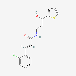 The mechanism by which (E)-3-(2-chlorophenyl)-N-(3-hydroxy-3-(thiophen-2-yl)propyl)acrylamide exerts its effects involves its interaction with molecular targets such as enzymes or receptors. The chlorophenyl and thiophene groups can facilitate binding to hydrophobic pockets, while the acrylamide moiety can form covalent bonds with nucleophilic residues in proteins, leading to modulation of their activity.