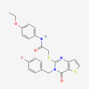 The synthesis of N-(4-ethoxyphenyl)-2-({3-[(4-fluorophenyl)methyl]-4-oxo-3H,4H-thieno[3,2-d]pyrimidin-2-yl}sulfanyl)acetamide typically involves multiple steps. The process begins with the preparation of the thieno[3,2-d]pyrimidine core, followed by the introduction of the ethoxyphenyl and fluorophenyl groups. Specific reaction conditions, such as temperature, solvent, and catalysts, are crucial for the successful synthesis of this compound.