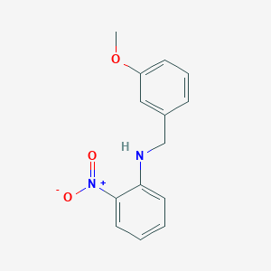 N-[(3-Methoxyphenyl)methyl]-2-nitroaniline is an aromatic amine derivative with the molecular formula C₁₄H₁₄N₂O₃ and a molecular weight of 266.27 g/mol. The compound features: