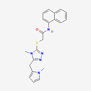 The synthesis of 2-({4-methyl-5-[(1-methyl-1H-pyrrol-2-yl)methyl]-4H-1,2,4-triazol-3-yl}sulfanyl)-N-(naphthalen-1-yl)acetamide typically involves multiple steps, including the formation of the triazole ring and the attachment of the pyrrole and naphthalene groups. One common synthetic route involves the use of Suzuki–Miyaura coupling reactions, which are known for their mild reaction conditions and functional group tolerance . The reaction conditions often include the use of palladium catalysts and boron reagents to facilitate the coupling process.