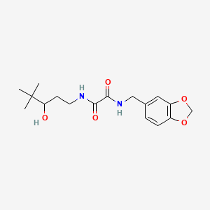 The mechanism of action of N'-[(2H-1,3-benzodioxol-5-yl)methyl]-N-(3-hydroxy-4,4-dimethylpentyl)ethanediamide involves its interaction with specific molecular targets. For instance, in medicinal applications, it may inhibit certain enzymes or bind to receptors, thereby modulating biological pathways. The exact molecular targets and pathways can vary depending on the specific application and context.